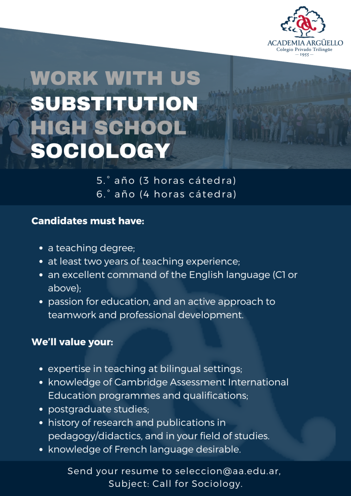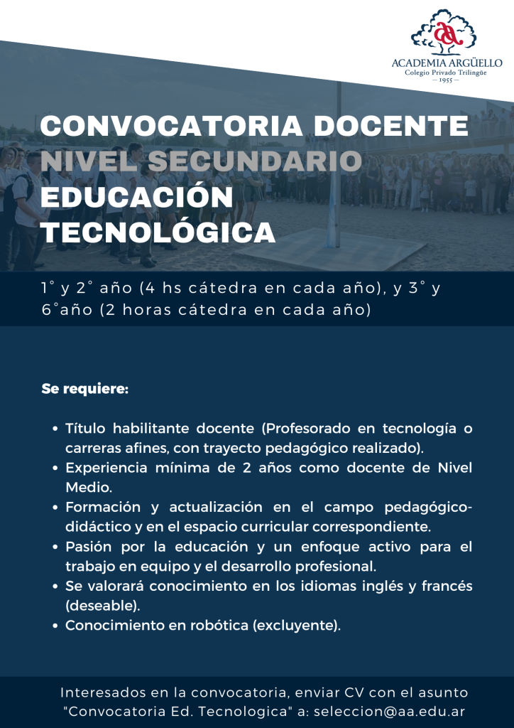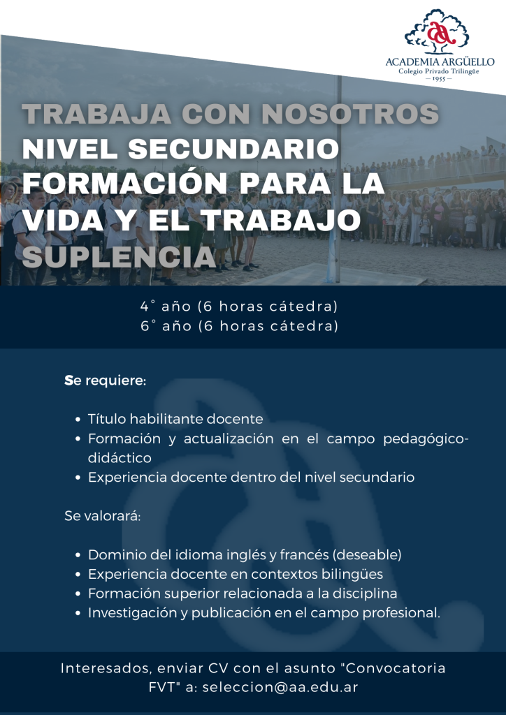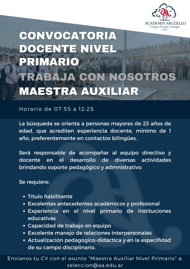 Envía tu curriculum a seleccion@aa.edu.ar con el asunto correspondiente.