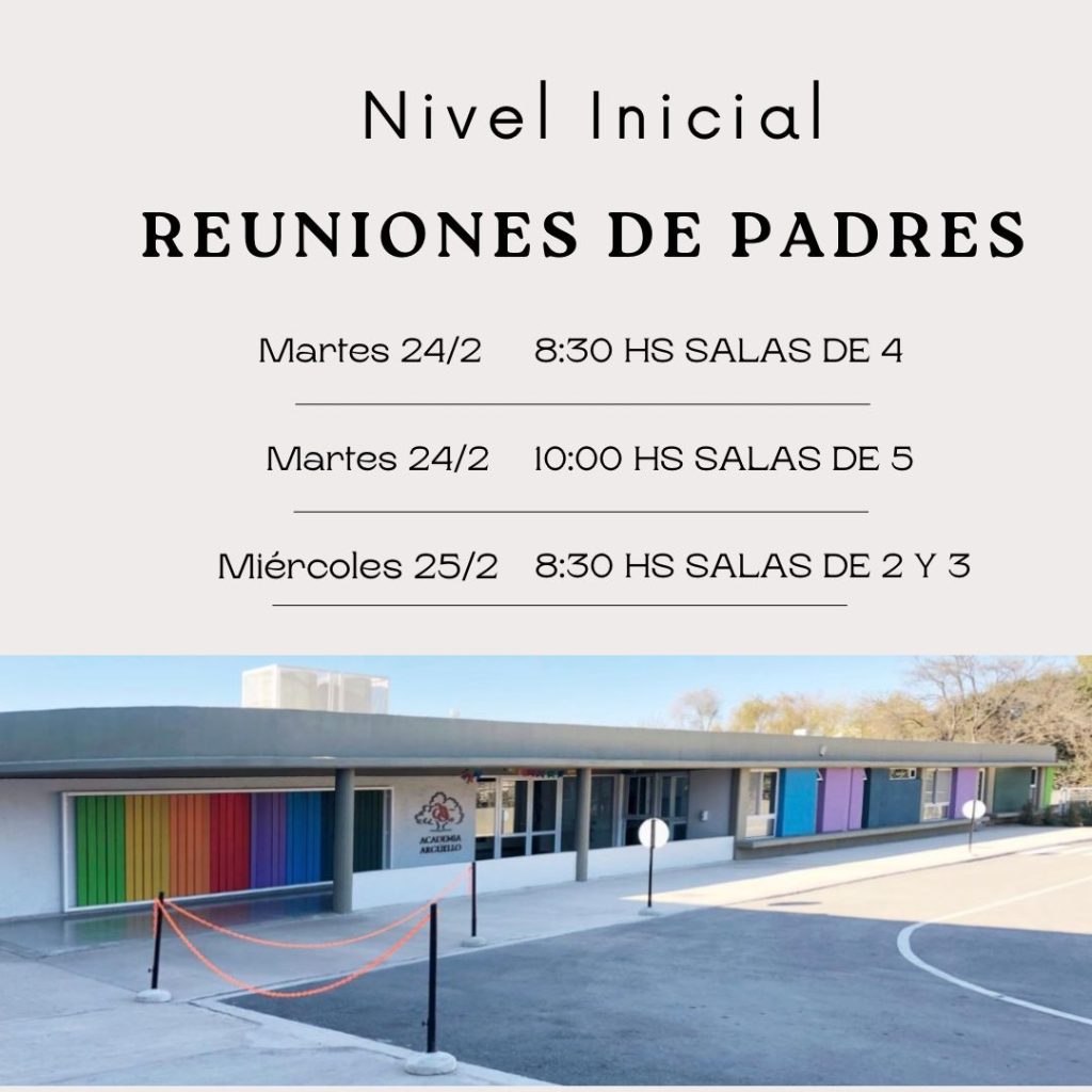 SALAS DE 4: Martes 24/02 a las 8:30h SALAS DE 5: Martes 24/02 a las 10:00h AALAS DE 2 Y 3: Miércoles 25/02 a las 8:30h REUNIÓN DE FAMILIAS – NIVEL INICIAL2026-02-052026-02-09https://aa.edu.ar/wp-content/uploads/2018/05/logo-1.pngAcademia Arguellohttps://aa.edu.ar/wp-content/uploads/2026/02/whatsapp-image-2026-02-05-at-4.16.57-pm-e1770645346326.jpeg200px200px